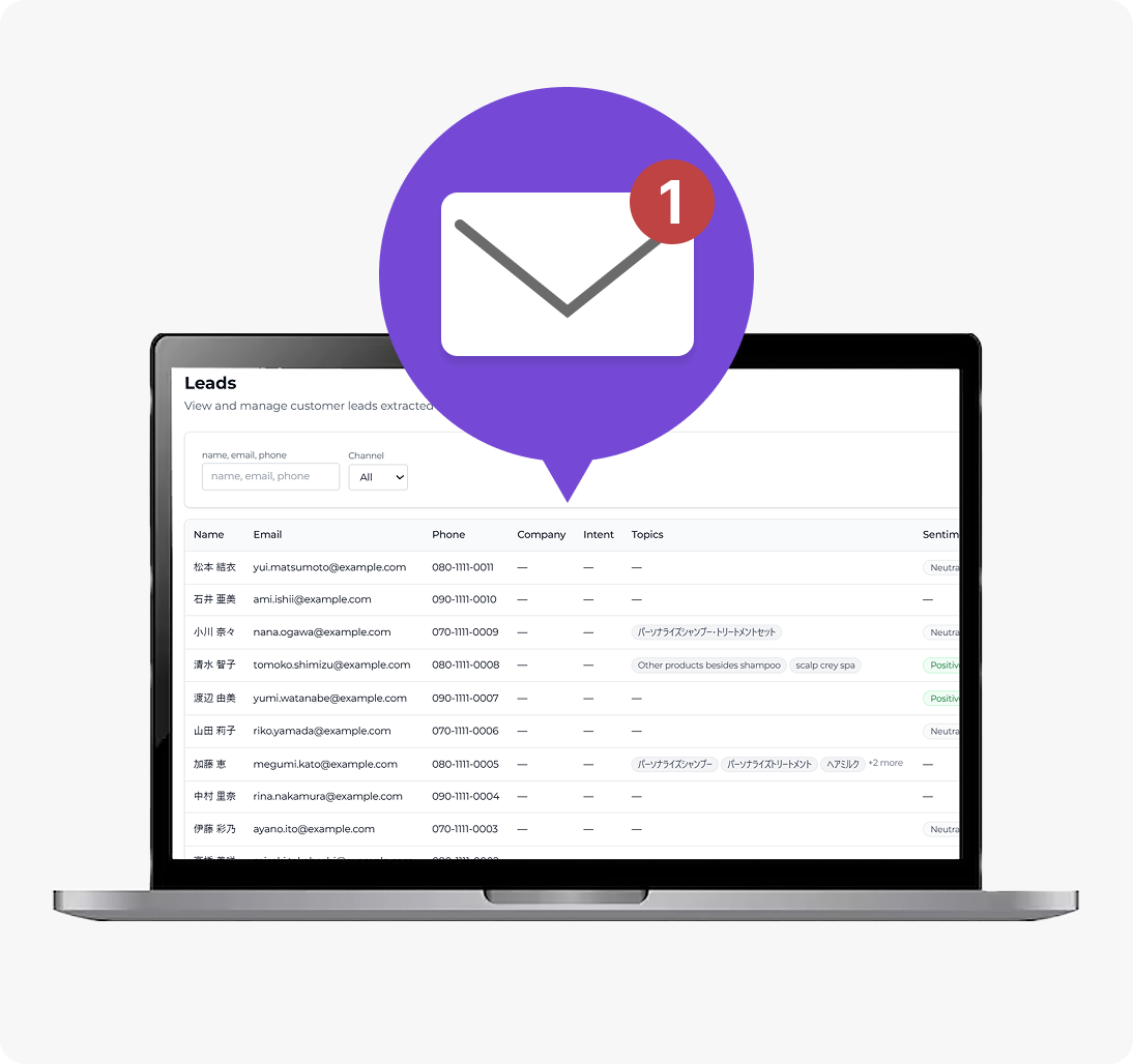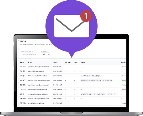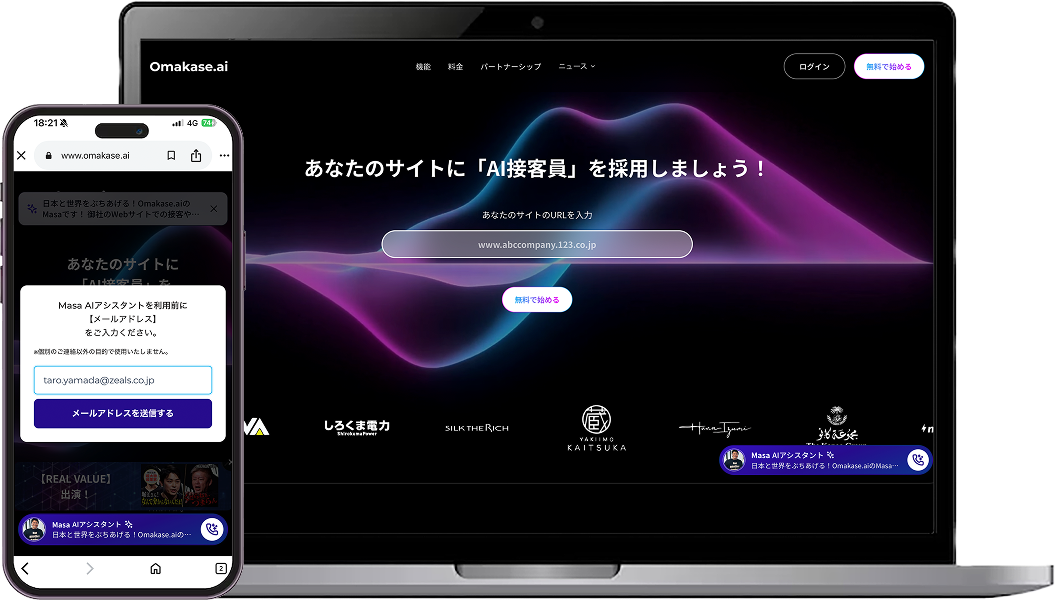 音声とチャットのハイブリッドAIが、24時間365日あなたに代わってリードを獲得!