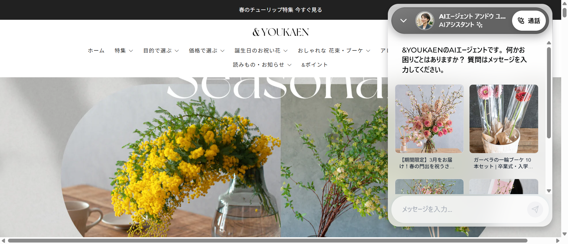 弊社はお花の総合商社として、お祝いやギフトのタイミングでお送りするお花のECサイトを運営しています。これまで、お客様からのお電話やメールでのご相談が非常に多く寄せられていたのですが、聞かれる内容は似ていることが多く、お客様のストレスをどれだけなくせるかという視点でチャットボットの導入をずっと検討していました。